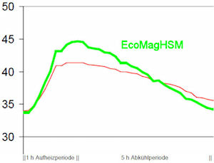 100°C Wärme in nennenswerter Menge aufnehmen. EcoMagHSM speichert bereits