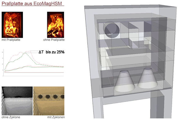 Feuerstätte selbst. EcoMagHSM Speichersteine können auch im Feuerraum