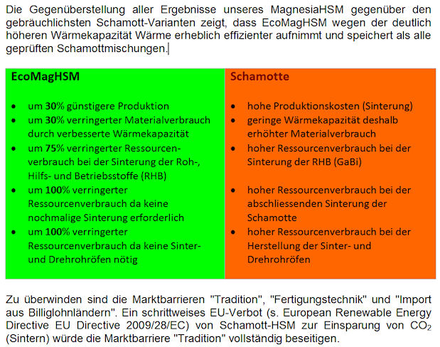 alle geprüften Schamottmischungen. EcoMagHSM kann auch bei weniger