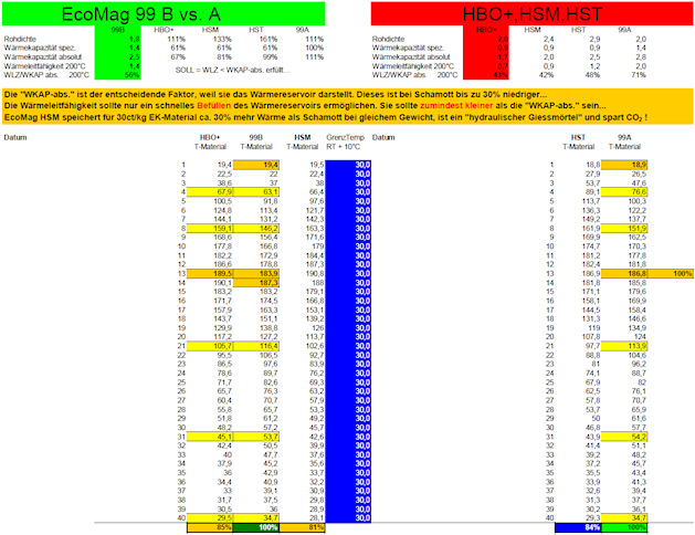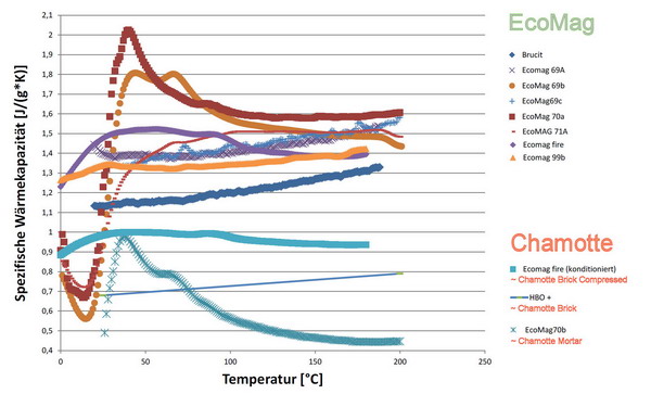 bei Schamott und anderen Wärmespeichermaterialien.
