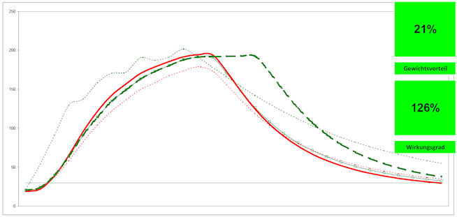 10-60% über den EcoMagHSM-Werten, d.h. es lassen sich mit EcoMagHSM zugleich 10-60% Gewicht