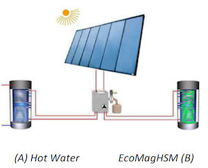 geleitet wird. Damit puffert EcoMagHSM die Überschusswärme während der