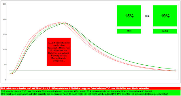 sind bereits ohne Ausgleich des deutlich höheren Schamott-Gewichts um