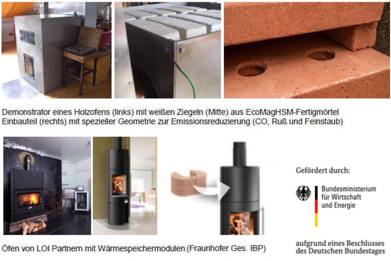 Endprodukte wie Speichersteine, Formsteine, Platten und der EcoMagHSM Wärmespeicher-Mörtel können derzeit leider nicht über uns bezogen bzw. angefragt werden, da wir und unsere ehrenamtlichen Kollegen mit Forschung und DIY-Projekten komplett ausgelastet sind ! Lizenznehmer decken derzeit krisenbedingt in erster Linie ihren Eigenbedarf und bieten deshalb meist keine direkt auf EcoMagHSM basierenden und allgemein verwendbaren Produkte im Baustoffhandel oder im Direktvertrieb für Verbraucher, End- und Privatkunden an. Mit einer Google-Suche nach "Speichersteine Magnesia" finden Sie sicher einige Produkte, die eventuell für den gewünschten Zweck verwendet werden können. Angaben zu den tatsächlich verwendeten "Magnesia" sollten sich in den technischen Datenblättern (TDBs) finden lassen. Sie werden feststellen, daß hier auch sog. Magnesit-Steine angeboten werden. Magnesit ist ein Magnesiumkarbonat (MgCO 3). Vorsicht ist angeraten bei den unter gleicher Bezeichnung angebotenen Steinen aus Elektro/Nachtspeicheröfen, die neben Asbest- und PCB-Verunreinigungen auch Chrom(VI)-oxid enthalten können. Chrom(VI)-oxid ist wasserlöslich, sehr giftig und wirkt sowohl mutagen als auch karzinogen.Bei den ebenfalls angebotenen Magnesia-Chrom-Steinen handelt es sich um gesinterte (bei hoher Temperatur gebrannte) Materialien, die in Hochöfen (> 1000°C) nur als feuerfester Dämmstoff eingesetzt werden, d.h. auch dort nicht als Wärmespeicher gedacht sind. Aufgrund unterschiedlicher Rohstoffe und Herstellungsverfahren variiert die Wärmespeichereffizienz sehr stark. Die hohe Rohdichte (> 4 kg je Liter) macht die Steine sehr schwer und entsprechend träge in der Wärmeaufnahme. Wärme wird sehr langsam aufgenommen und "verliert" sich im viel zu schweren Speicher. Ein nur "lauwarmer" Speicher kann nur auf niedrigem Temperaturniveau emittieren, d.h. auch die an den Raum abgegebene Speicherwärme ist nur gering und die Strahlungswärme ist nicht mehr spürbar. Die Wärmespeichereffizienz liegt dann im Idealfall zumindest noch im Bereich von teuren nachgepressten Schamott-Steinen und den aus Nachtspeicheröfen bekannten Feolit-Steinen. Die Preise der unter der Bezeichnung "Magnesia-" bzw. "Magnesit-" angebotenen Speichersteine bewegen sich aktuell (04.2025) zwischen 3.-€ und 12.-€ je kg bzw. 6.-€ bis 25.-€ je Stein (NF). Die wenig effizienten hydraulischen Schamott-Speichermörteln kosten im Handel je nach Import-Qualität ca. 1,80 €/kg bis 3,70 €/kg. EcoMagHSM ist nur halb so schwer (Rohdichte ~ 2 kg je Liter) und generell ohne Brennen/Sintern erheblich günstiger herzustellen. Bei den von uns als Privatanwender selbst hergestellten EcoMagHSM-DIY-Steinen liegen die Materialkosten zwischen 10ct/kg und 60ct/kg. In unserem EcoMagHSM | Handbuch stellen wir Ihnen neben Hintergrundwissen aus den Forschungsberichten auch die speziell für Privatanwender interessanten Rezepturen zur Verfügung. Enthalten sind alle relevanten Informationen, die wir zur Herstellung von Speichersteinen und zur Optimierung von Kaminöfen benötigen: