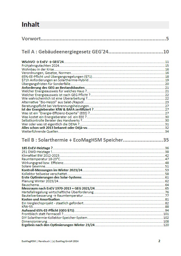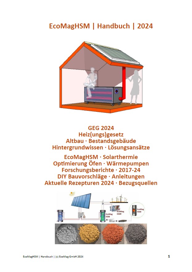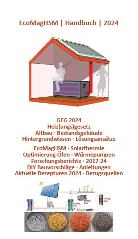 Das Buch © EcoMagHSM 2.Aufl.2025 GEG 2024 Stand 10.2025 · Bestandsgebäude · Hintergrundwissen · Altbau · Neubau · Solarthermie · Optimierung Öfen · Wärmepumpen · Forschungsberichte 2017-24 · DIY Bauvorschläge · Lösungsansätze EcoMagHSM · Aktuelle Rezepturen · Bezugsquellen · Deutsches Handbuch · 270 Seiten · PDF · Download · 27,00 EUR