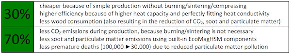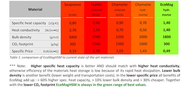 replace the traditionally for heat storage used chamotte. The raw materials of