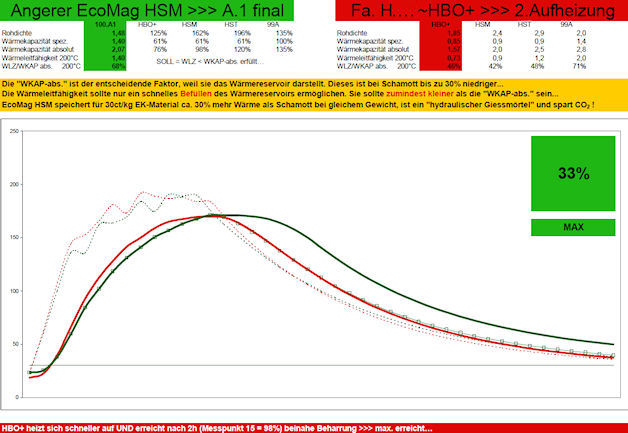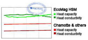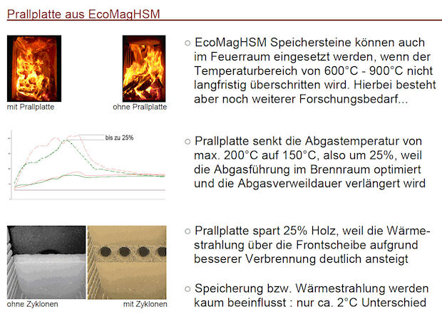 je nach Rezeptur) von EcoMagHSM auch gegenüber extrem schweren Schamotten erheblich, da EcoMag anders als Speckstein/Schamott ein ideal ausgewogenes
