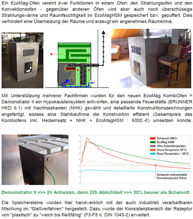 EcoMagHSM und den Original-Speichermodulen aus Schamott und Speckstein, zeigt